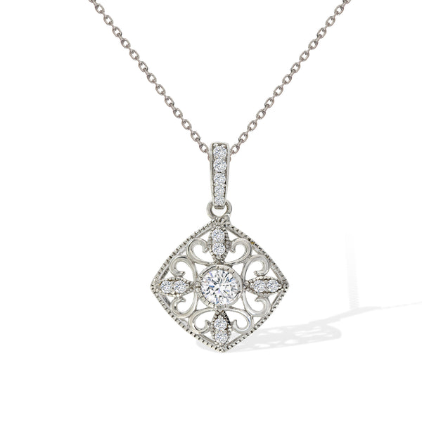 Gemvine Sterling Silver Vintage Cubic Zirconia Necklace Pendant