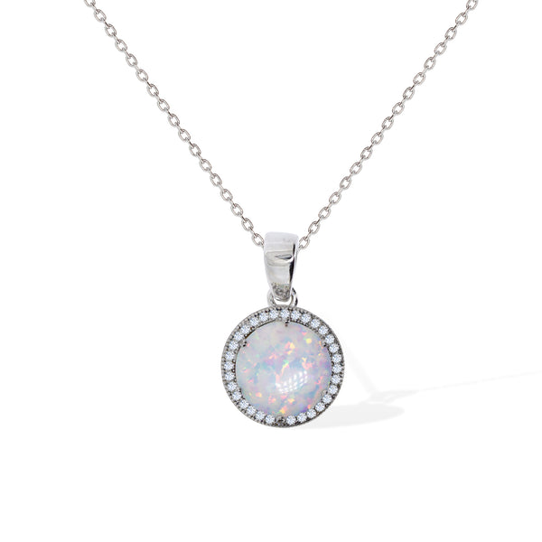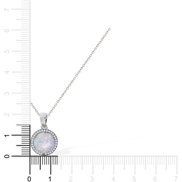 Gemvine Sterling Silver Round Large Opalique Necklace Pendant + 18 Inch Adjustable Chain