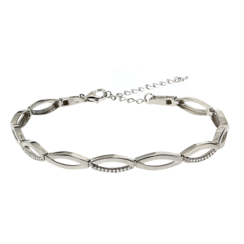 A must have for anyone into silver jewellery, this stylish sterling silver bracelet comes with a highly polished finish with cubic zirconia stones set in intervals around the entire bracelet that would be cherished for many years to come! Why not purchase this as a gift to a loved one, giving her the statement that should not be overlooked. This bracelet also comes complete with a secure spring operated lobster clasp as well as an adjustable chain suitable for 7.25 – 7.75 inch wrists.