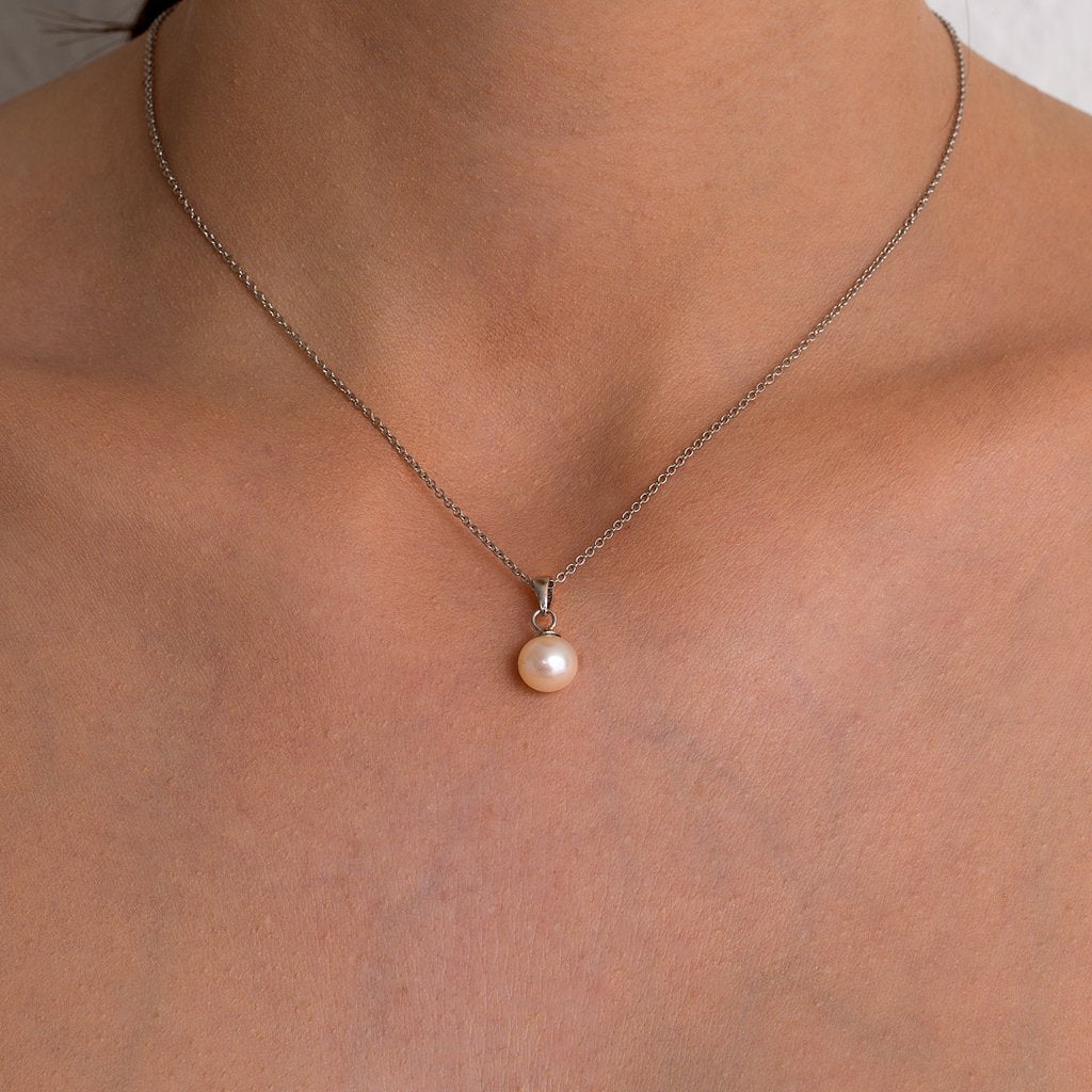 Crafted in sterling silver & freshwater pearl this glamorous silver pearl pendant will make the perfect gift for a birthday, anniversary or any other special event. Featuring an impressive 8mm freshwater pearl this silver pendant also comes with an adjustable 18" chain. This silver pearl pendant is also available in a range of sizes.